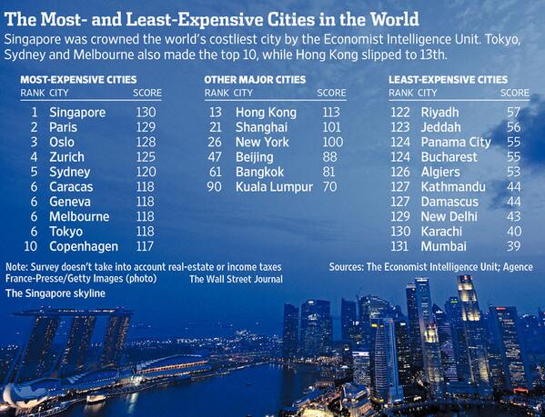 “@WSJ: Singapore was crowned world's most expensive city: http://on.wsj.com/1qdhqq3 pic.twitter.com/89NmJW1lP5” @LaurennElisee