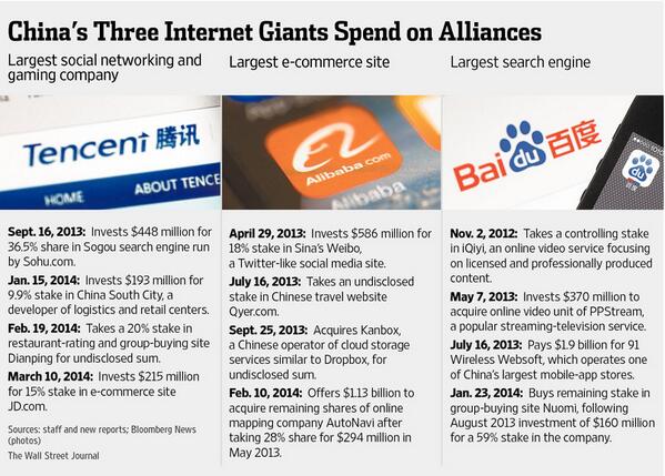 China's Tencent buys into http://JD.com , heating up competition w/ Alibaba. http://on.wsj.com/1qrhGBJ pic.twitter.com/i3Oc5z5bKv