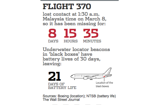 How long has the Malaysian Airlines plane been missing? Here's the @WSJ clock: http://on.wsj.com/1qHKPsz #MH370pic.twitter.com/GmZUnDl08e