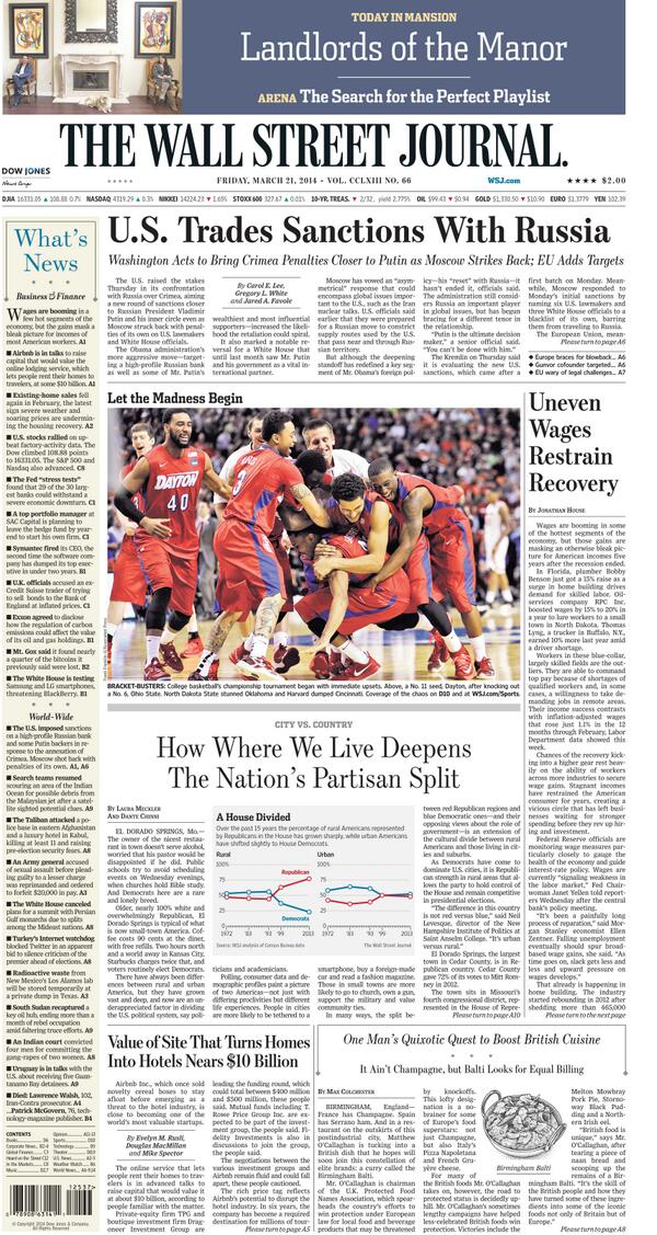 A House Divided. Interesting! RT @WSJ: today's Page One stories: