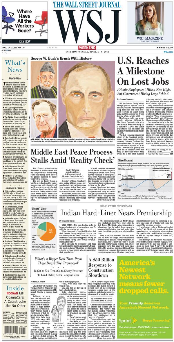#Bush is really talented. Those #paintings are good “@WSJ: Here is today's front page of The Wall Street Journal pic.twitter.com/ooXo37TuIy”