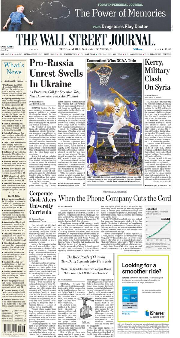 "@WSJ Today'sPage1 stories:#WSJPage1 pic.twitter.com/xjDAcm2BJt" Where's this going2end?When Putin takes Ukraine back.Does any EuroCountry mind?