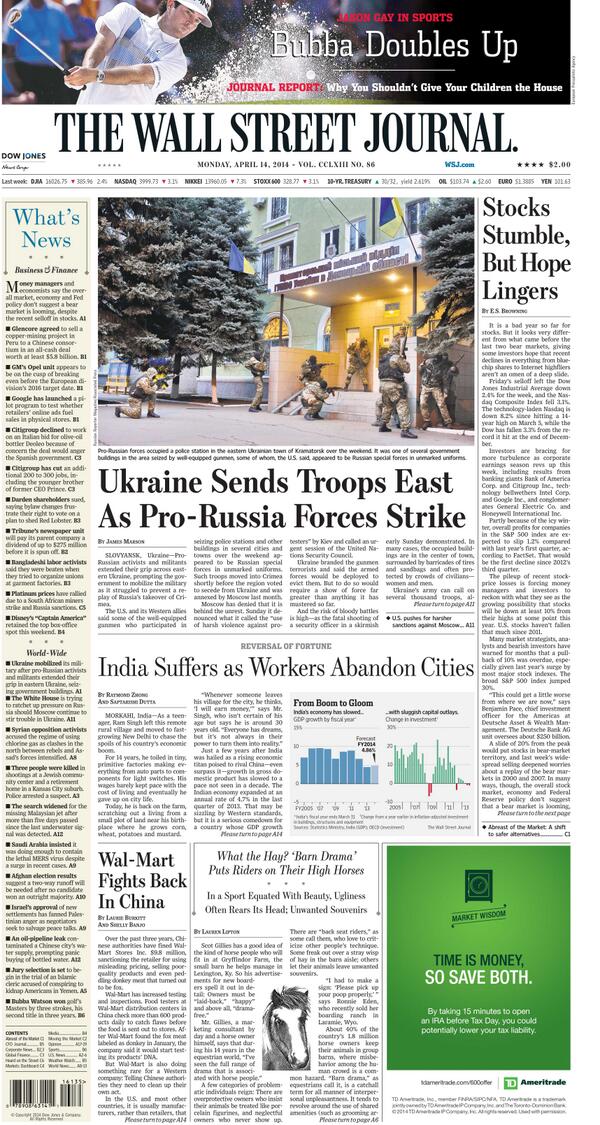 Closer to war in Ukraine? Look at WSJ cover.