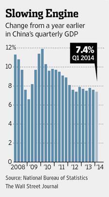 #China GDP growth slips in first quarter to its slowest level in 18 months. http://on.wsj.com/1t8NInq pic.twitter.com/kjLG1ljeT4 @WSJ #Economy