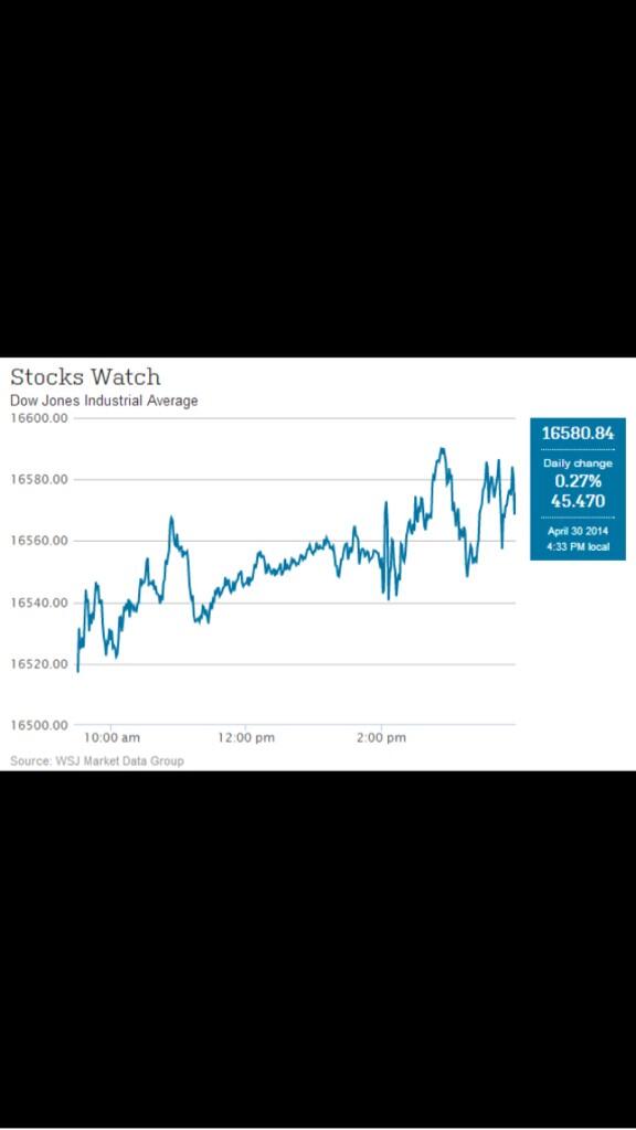 @WSJ: The Dow notched its first record close of the year Wednesday: http://on.wsj.com/1jj3mbw pic.twitter.com/TBTxrHFySB” yay us