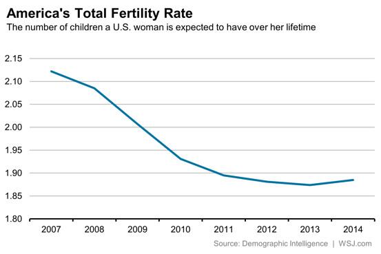 “@WSJ: U.S. fertility rate is starting to rise slightly after falling during recession: http://on.wsj.com/1iOeDRG pic.twitter.com/qzHYflUhMN”