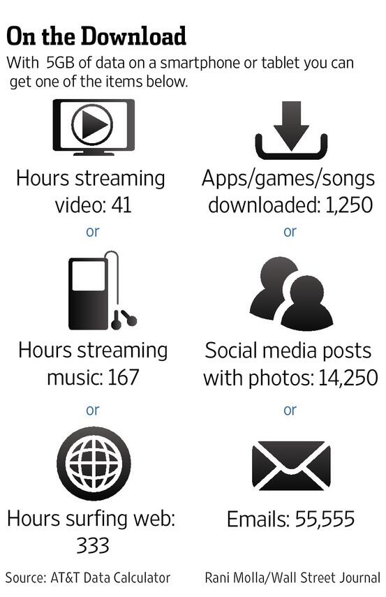 @WSJ: What 5 GB of data on a smartphone or tablet gets you: http://trib.al/4xy1gvH pic.twitter.com/Em2ILBK1Jv”@paopar
