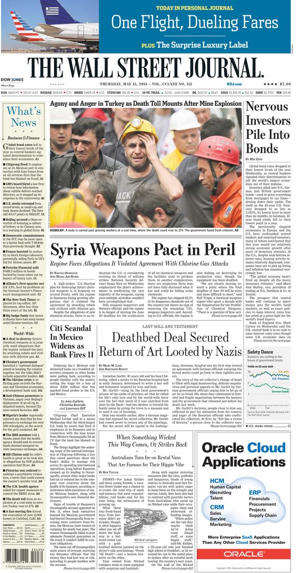 @WSJ: Death toll mounts after mine explosion in Turkey, and more stories from today's#WSJPage1: http://on.wsj.com/QLeAdI ”Thanks. Twitter will use this to make your timeline better. UndoUndo