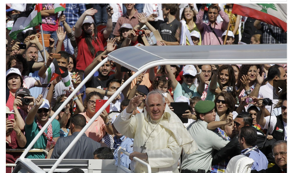 At first thought this was at #Indy500 parade. Starting in Row 10. RT @WSJ: Pope Francis arrives in the Middle East.pic.twitter.com/nbXfjPNbrh