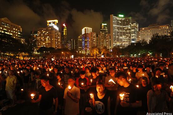 Thousands gather in Hong Kong to mark 25th anniversary of Tiananmen crackdown: http://on.wsj.com/1jSRsBv pic.twitter.com/J1sV9sWHwv RT@WSJ @MPSCHM