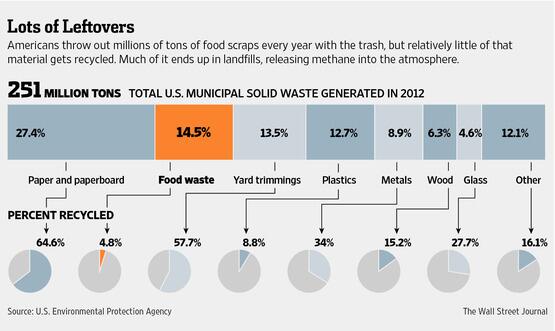 @WSJ: Americans tossed out over 36 million tons of#food in 2012. Less than 5% got recycled: http://on.wsj.com/1lbzhvJ pic.twitter.com/XWiTCKhPeD”