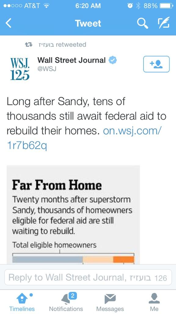 @WSJ Long after Sandy, tens of thousands still await federal aid to rebuild their homes http://on.wsj.com/1r7b62q ... or Planned-Relocations?Thanks. Twitter will use this to make your timeline better. UndoUndo