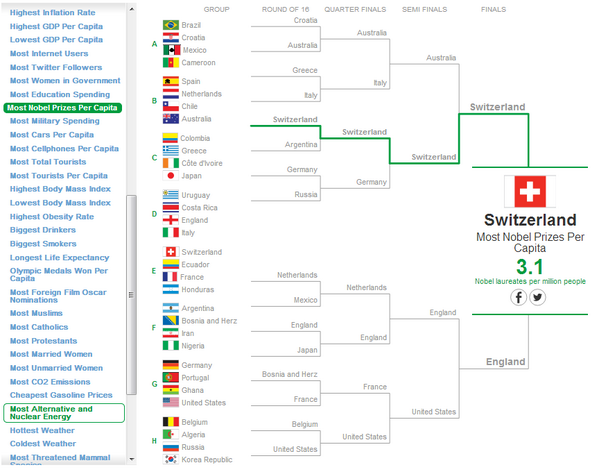 Ever wondered who'd win a World Cup of Nobel Prizes or murder rates? Some interactive fun @WSJ http://graphics.wsj.com/documents/WORLDCUPTOEE/?mod=e2tw#/?lang=en&metrics=Most%20Nobel%20Prizes%20Per%20Capita …pic.twitter.com/ydhKjzoNYg