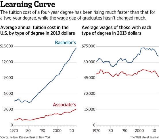 @WSJ: Who earns more, a graduate with a two-year or four-year degree? Surprising findings: http://on.wsj.com/1yL8FYs pic.twitter.com/SRnZT48IMp