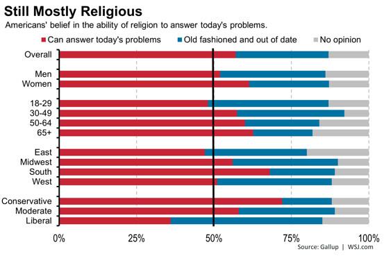 @WSJ: Most Americans say religion can answer all or most of today's problems. http://on.wsj.com/1r6d2v3 pic.twitter.com/OfE7Axu2Rg” NO surprises