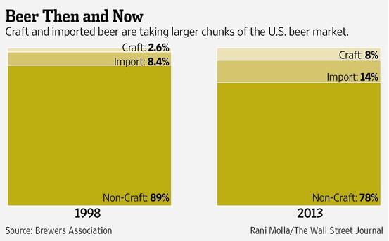 @WSJ: Americans are consuming less beer per capita, but more of it is craft beer: http://on.wsj.com/1mKnu3H " So, the same as past few years. -