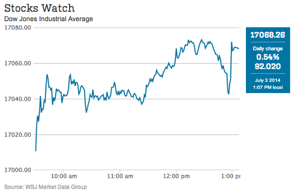 @WSJ: Dow Jones Industrial Average closes above 17000 for first time ever. http://on.wsj.com/1xlzNeQ pic.twitter.com/XHeNP6HTaO”