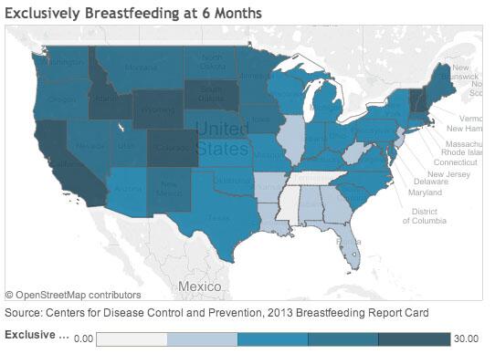 “@WSJ: States where new moms are most and least likely to breastfeed for at least six months: http://on.wsj.com/1orezFZ pic.twitter.com/33gkfFDXla”