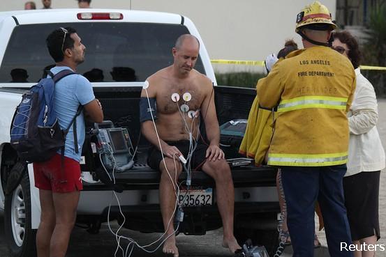 “@WSJ: Lightning strikes 14 people, killing one in Southern California http://on.wsj.com/1zkGVsX pic.twitter.com/hmxhDOc93c” Raio em Venice beach!