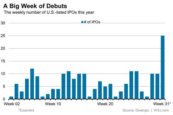 “@WSJ: This week 25 companies are looking to go public in U.S. - the most since August 2000. http://on.wsj.com/1rvFF1y pic.twitter.com/LdiIEt91fB”