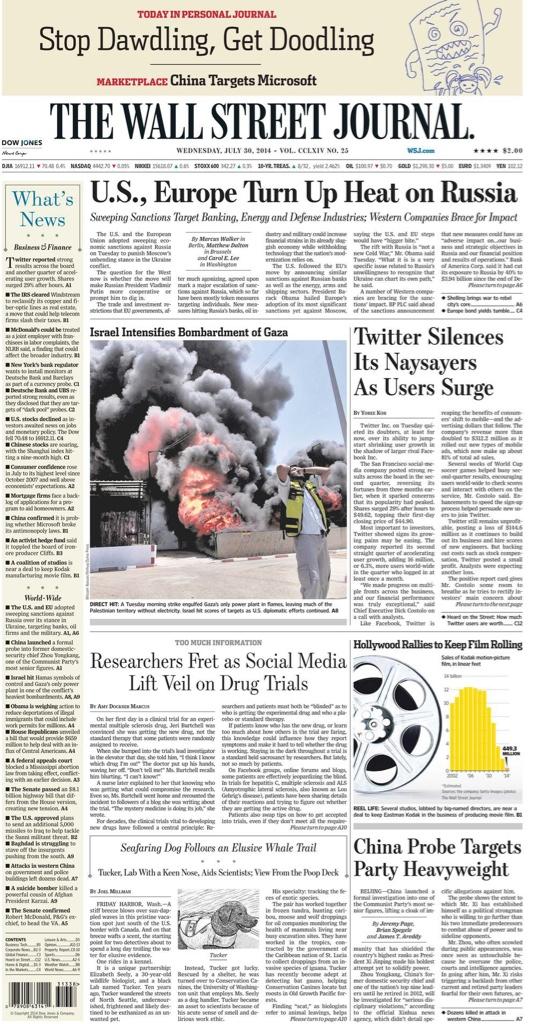 @WSJ: Take a look at the stories that made our front page pic.twitter.com/qLCr8foelo”