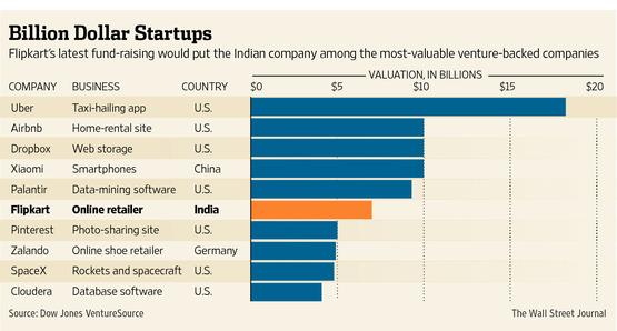 @WSJ: Flipkart, India's largest online retailer, raises $1 billion in fresh funding http://on.wsj.com/1k8gdjX pic.twitter.com/3oglIHyYv5”