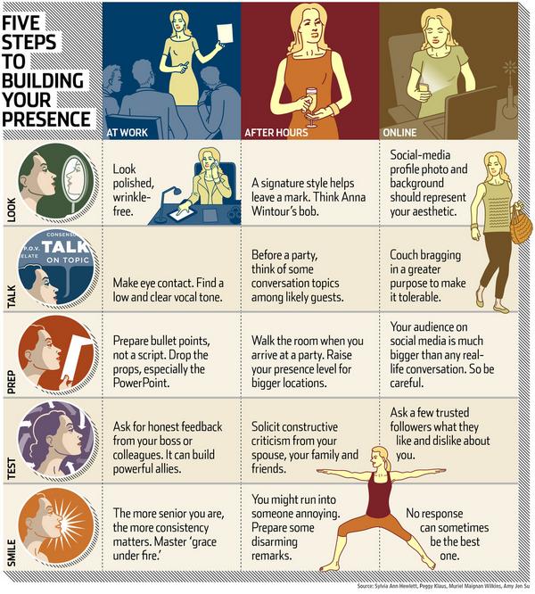 “@WSJ: How to develop your personal presence at work, at parties and on social media: http://on.wsj.com/XEKAEo pic.twitter.com/EdjkVcQiqD”
