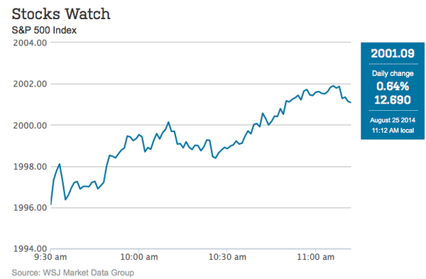 “@WSJ: The S&P 500 index crossed 2000 for the first time in intraday trading: http://on.wsj.com/1nu3pjK pic.twitter.com/AdPpVbY1LG”