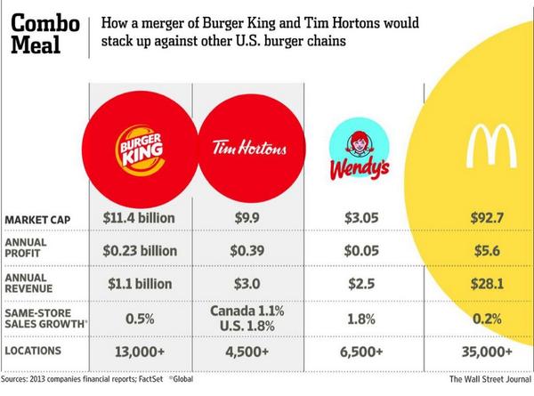 “@WSJ: What the Burger King-Tim Hortons deal means for the fast-food business: http://on.wsj.com/1q1MHgz pic.twitter.com/IQjfq7lF9p”