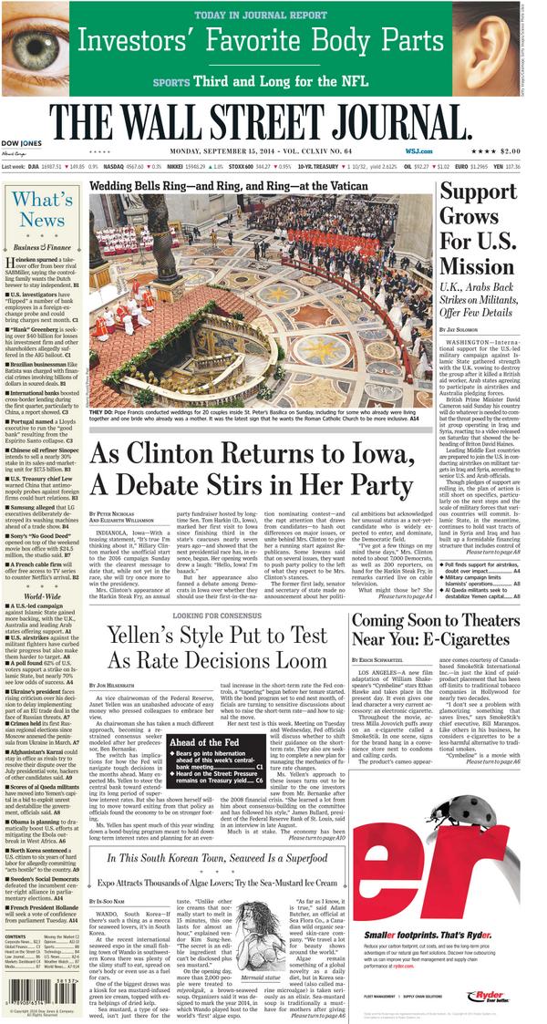 "Sea-mustard ice cream" RT @WSJ: Take a peek at the stories that made our front pagepic.twitter.com/qnDhBzyqCQ