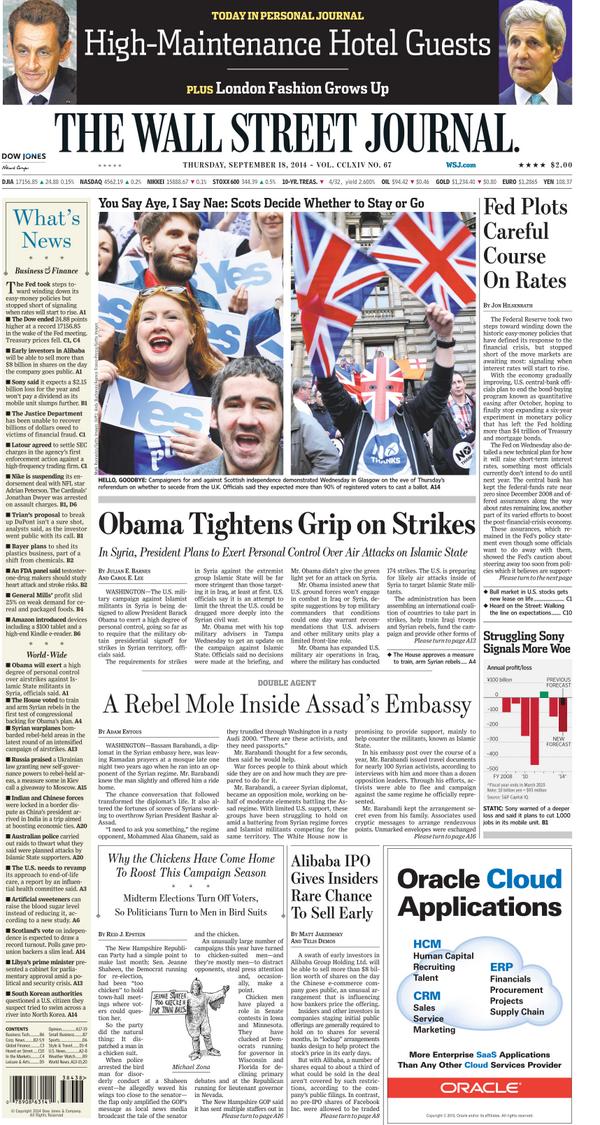 The Wall Street Journal‏Verified account @WSJ 18 Sep 2014