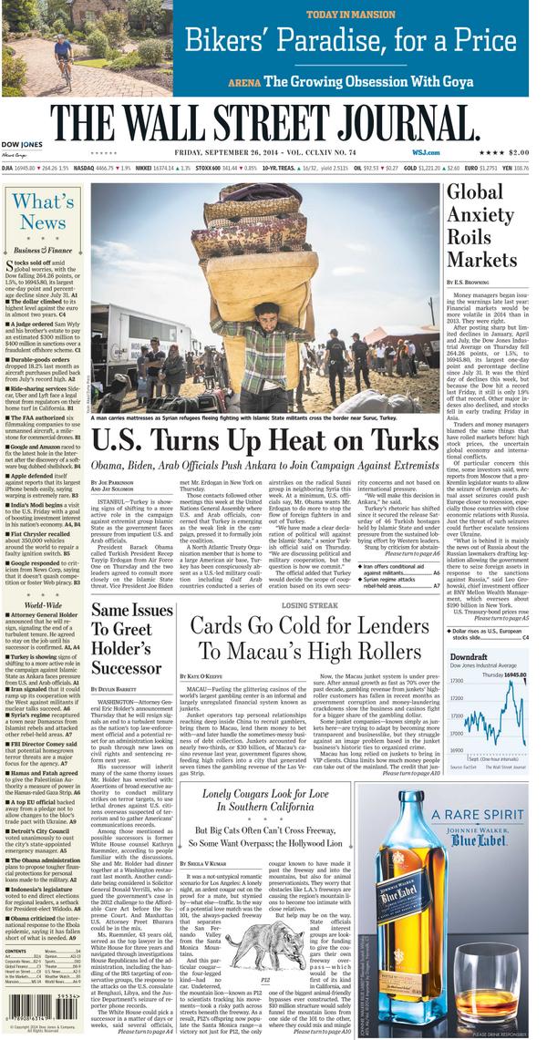 @WSJ: Take a look at our front page: pic.twitter.com/A31Da8EOfo” --- Turkiye'ye ISIDe karsi koalisyona girme baskisi artiyor!