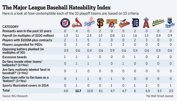 So it’s a nice that we’re not @Royals nation? @wsj hateability index of @MLB playoffs teams: http://on.wsj.com/1ry8EVg pic.twitter.com/88syZ9oJbs