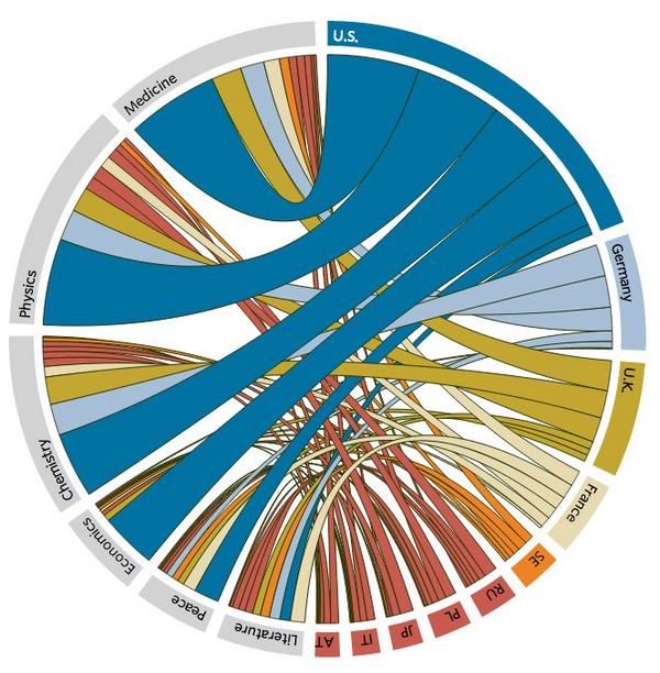 Nobel Prize visualization: The top 10 countries http://on.wsj.com/1sjOLl5 #NobelPrize2014 pic.twitter.com/LHc5zZgOEd via @WSJ
