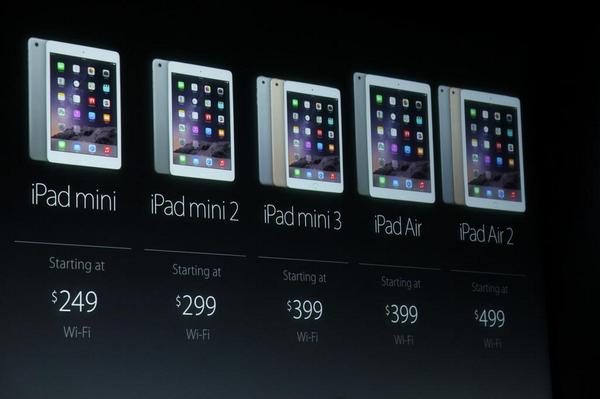 @WSJ: Apple is keeping the older iPad Air along with http://on.wsj.com/1rB1aw2 pic.twitter.com/rYD88akGZD” / diferentes precios hasta 499 USD ok