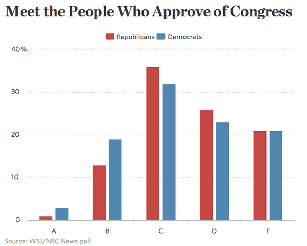 @WSJ A handful is quite vague - 2% of all Republicans & Democrats gave them an "A". Nothing to brag about. http://on.wsj.com/1wN7q8r