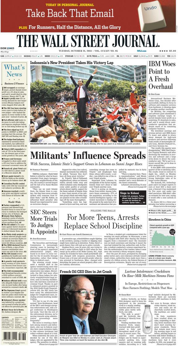 “@WSJ: Take a peek at today's front-page stories: http://on.wsj.com/1sJ42e8 pic.twitter.com/nmpCPZ4CTd”