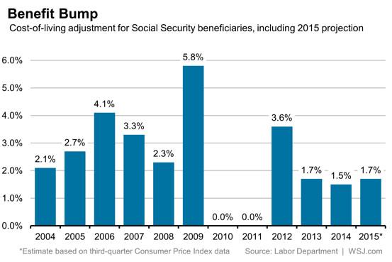 “@WSJ: Americans' Social Security benefits to increase 1.7% in 2015: http://on.wsj.com/1nyZTuj pic.twitter.com/h5sUqSVUk5”