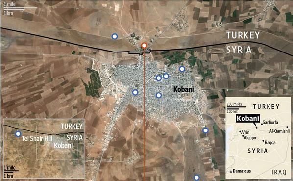 ISIS コバニ近郊の丘再度占領@WSJ http://on.wsj.com/12iVTEG @iwakamiyasumi @tim1134