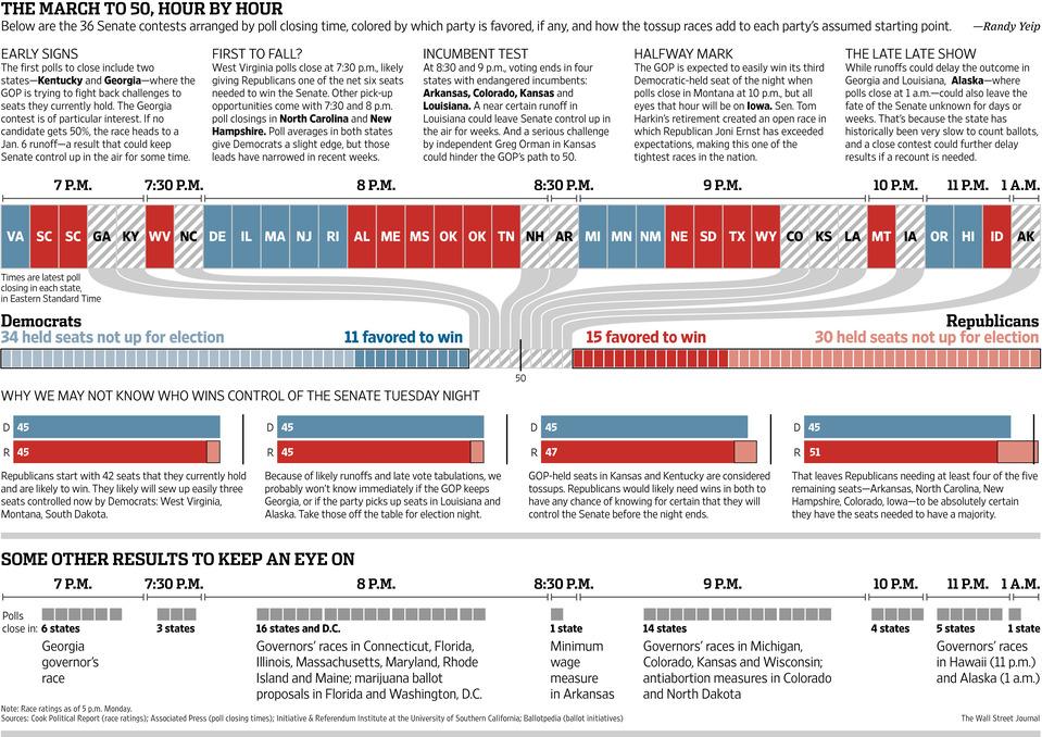 “@WSJ: Hour-by-hour, here's what to watch for as the polls close on Election Night: http://on.wsj.com/1vEzl8J pic.twitter.com/etlNXR2B2x”
