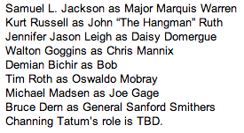 Can't wait to see @WSJ: Here's the cast for Quentin Tarantino's new film, "The Hateful Eight": http://on.wsj.com/1zyHm5x pic.twitter.com/AB69vp7WMa