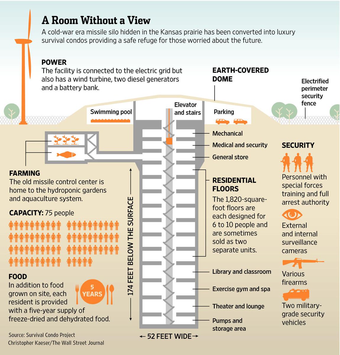 MT @WSJ: "Survival Condo," a 15-story building underground, units cost up to $3M: http://on.wsj.com/1stASws pic.twitter.com/hMeGhMlGYQ #prepper