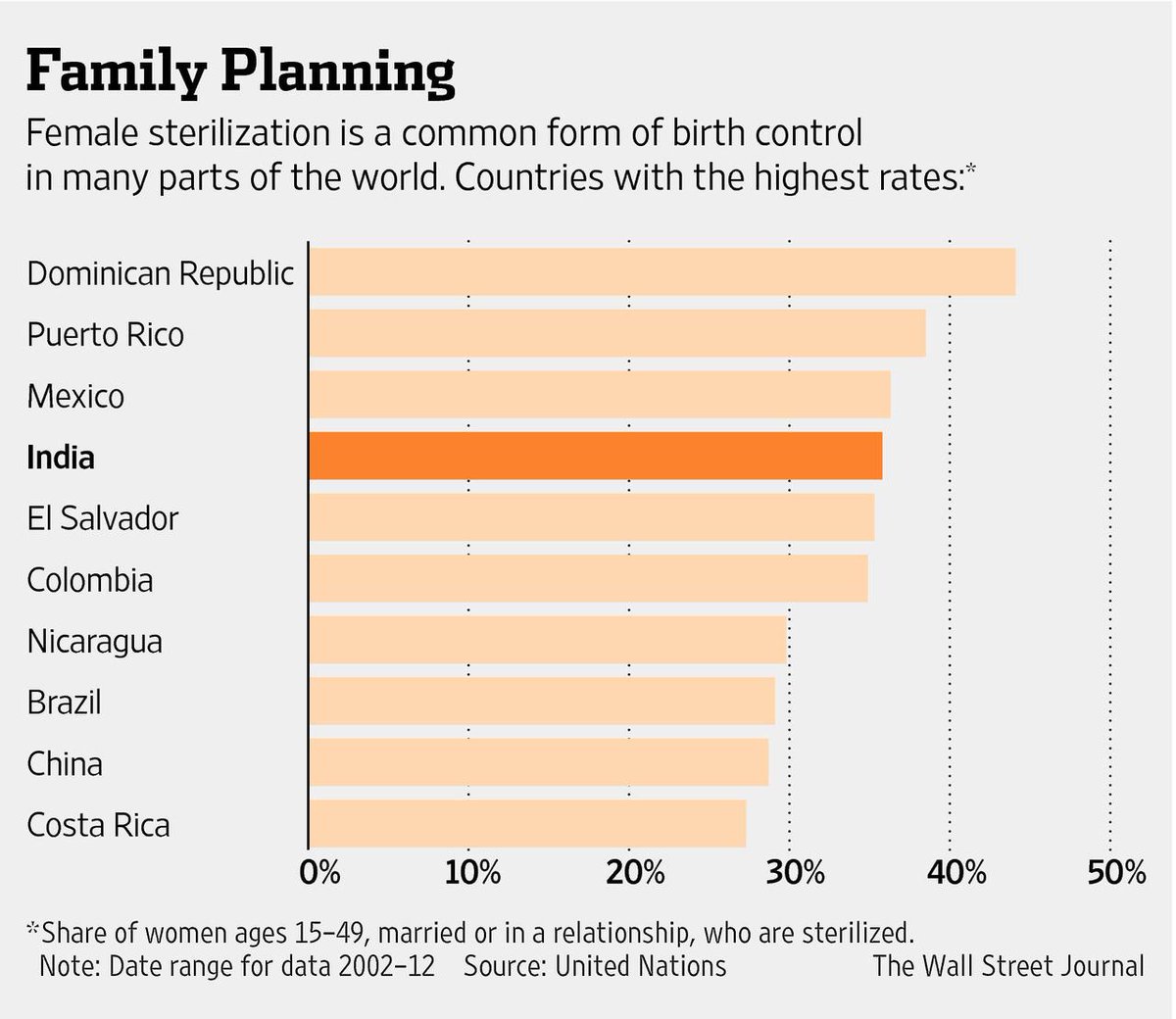 @WSJ: Female sterilization is a common form of birth control in many parts of the world http://on.wsj.com/1zo3xsq pic.twitter.com/7mvzkw3mEI”