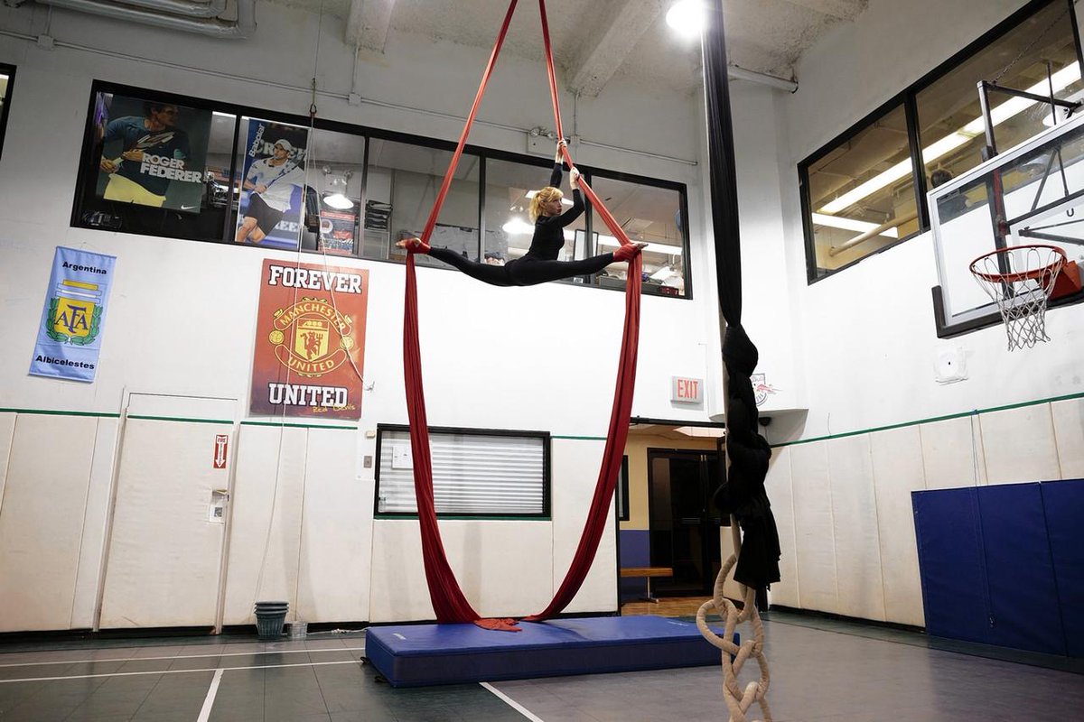 For "Cabaret" actress, a typical workout involves stretching on aerial silks: http://on.wsj.com/1xfiRrY pic.twitter.com/3je7GRGOg3