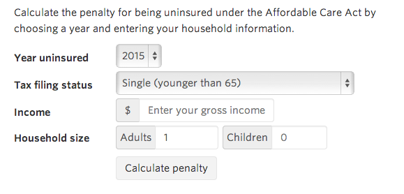 @WSJ: What if you don't buy health insurance for 2015? Calc your penalty for being uninsured: http://on.wsj.com/1xJwRcs ">By force.#GruberThanks. Twitter will use this to make your timeline better. UndoUndo