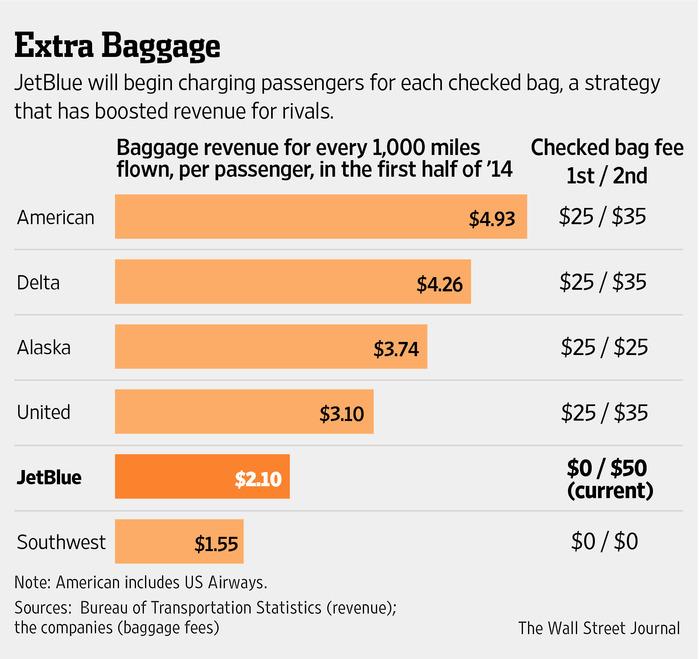 @WSJ: JetBlue is adding baggage fees and cutting passenger legroom: http://on.wsj.com/1xGkTCV pic.twitter.com/XlnKKYulBS”