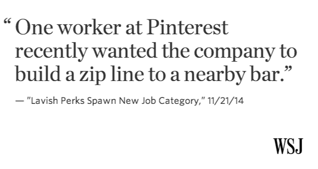 “@WSJ: Lavish perks at Silicon Valley companies include yoga, Jell-o shots, game nights: http://on.wsj.com/1p5NRcx pic.twitter.com/lQng1tZj0n”