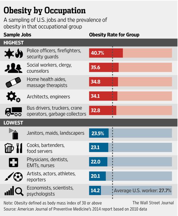 Alarming! “@WSJ: Police officers are much more likely to be obese than other U.S. workers: http://on.wsj.com/1zuQd7i pic.twitter.com/WVTK4ijZ2Y”