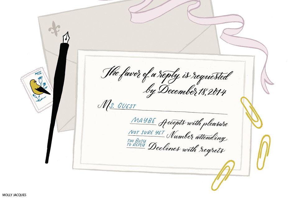 So sadly true. “@WSJ: Nobody RSVPs anymore: "We've forgotten how to simply commit.” http://on.wsj.com/1AwiusG pic.twitter.com/tRARgpJAVL”