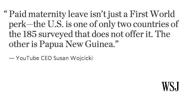 “@WSJ: Paid maternity leave is good for business, writes @YouTube CEO Susan Wojcicki: http://on.wsj.com/1w3rwsw pic.twitter.com/bpF68qWBcd”